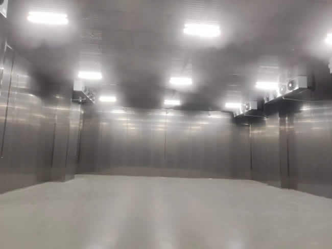 冷庫優勢:制冷系統一備一用、304不銹鋼保溫冷庫板、防凍地面。