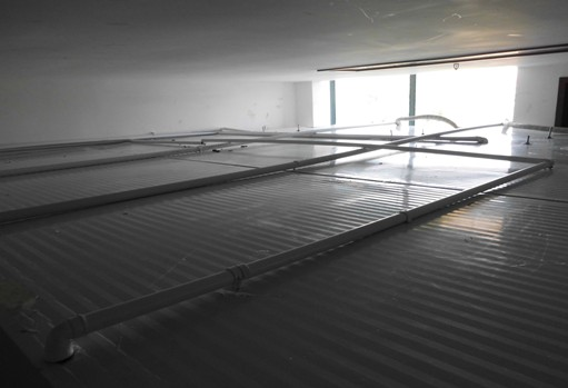 冷庫墻板拼裝完成,準備裝頂板,在裝頂板的同時也是需要先打上發泡劑,以庫華冷庫的密封性,制冷效果好。