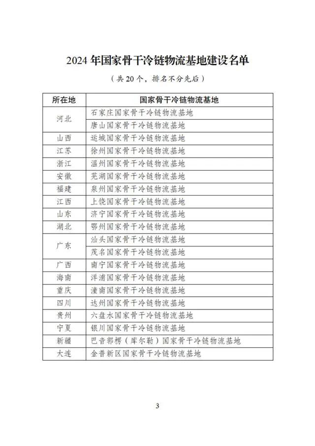 國家發展改革委發布2024年國家骨干冷鏈物流基地建設名單